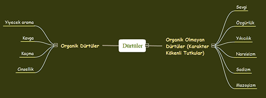Bu çerçevede, organik dürtülerin doğa ve kalıtımla; organik olmayan dürtülerin ise karakterle belirlendiği söylenebilir.