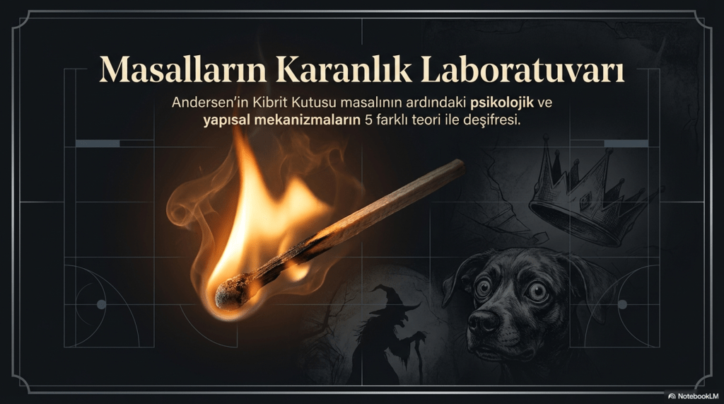 “Kibrit Kutusu” Bettelheim’ın masal analizinde, çocuğun bilinçdışı çatışmalarını dışsallaştıran bir büyüme ve özerklik hikâyesi olarak okunur; asker, çocuğun dürtüsel benliğini, üç köpek ise id’in ham güçlerini temsil eder.